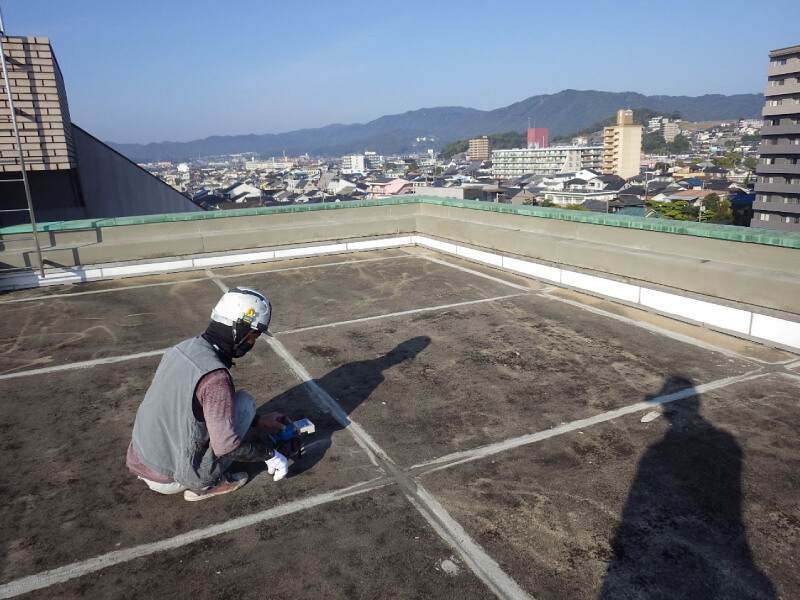 劣化した屋上防水を補修し、躯体に水が浸入するのを防ぎます。